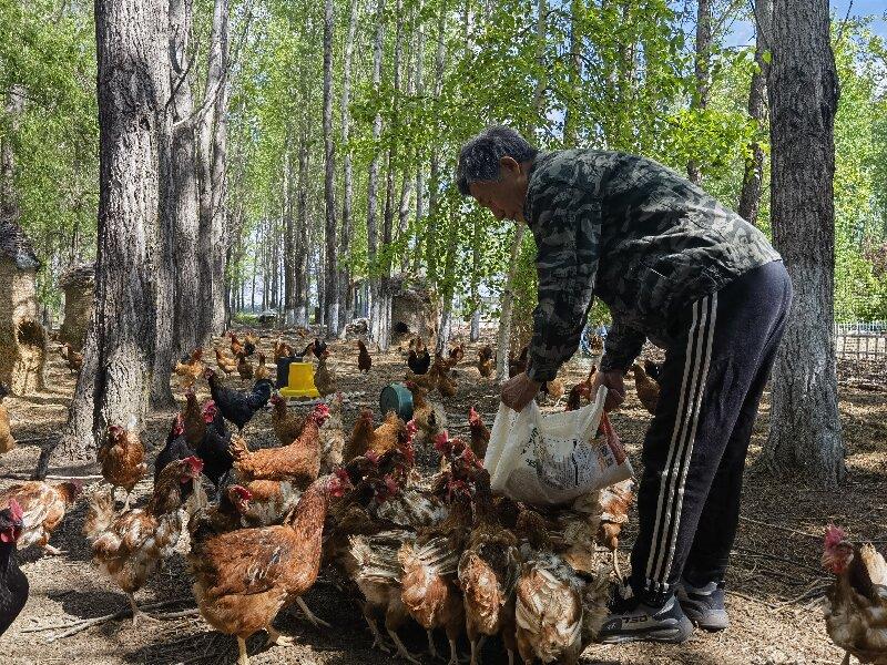 2013年,农场发展自营经济和林下经济的惠民政策落地,张景德的林地终于迎来“用武之地”。他试水生态家禽养殖,管理区党支部和工会全程护航:从引进鸡雏、购买饲料到疫病防疫全程指导,销售时还协调电视台做宣传、跑市场拓渠道。当年8000多只溜达鸡全部售罄,让他彻底摘掉了贫困帽子。靠着这份踏实与韧劲,张景德在林业技术人员指导下创新养殖模式,将林地划分为4个放养区轮养,实现“肥地、肥禽、丰林”的生态循环。此后,他陆续扩建圈舍、开挖养鱼池、建起酿酒厂房,开办农家乐,形成“酒糟喂鸡、鸡粪喂鱼、鲜鱼供市”的立体发展模式,“德福生态养殖园”声名渐起。