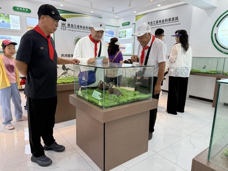 活动伊始,全体成员在保护区标识前整齐列队、合影留念,鲜艳的红领巾成为联结老少辈的纽带,也拉开研学序幕。步入展厅,讲解员为孩子们讲解鸟类、湿地生物知识,将专业知识转化为生动叙述,为孩子们搭建起生态认知的桥梁。