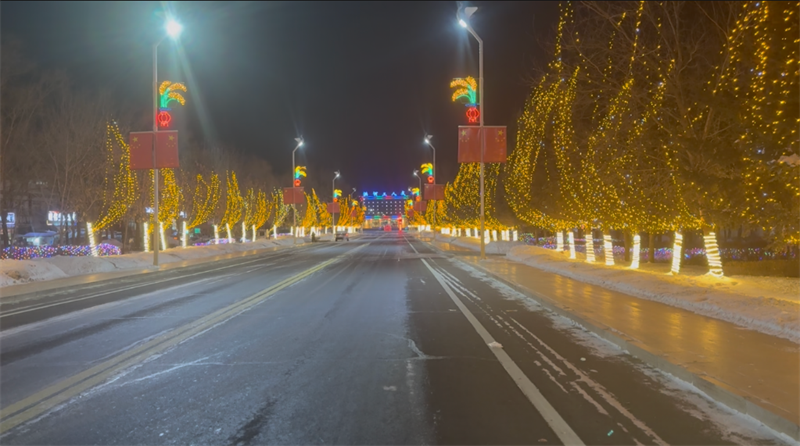 夜幕降临,农场街巷流光溢彩,职工群众驻足赏景,返乡游子感受家乡温暖。下一步,管护中心将常态化巡查维护,保障灯光设施稳定运行。