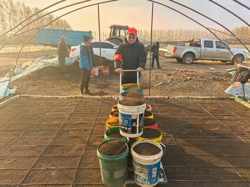 走进第八管理区三号地安玲家的的育秧大棚,金属拱架下,党员干部分工明确、协作有序。有的手持水桶细致调配育秧土壤,有的操作摆盘机精准铺土,还有的俯身检查摆盘质量,确保每一个育秧盘都符合标准。“管理区党员干部来得太及时了,有了他们的帮忙,我们的秋摆盘进度至少能提前两天,来年水稻育秧也更有保障了!”农户迟大哥一边熟练地整理育秧盘,一边笑着说道,脸上满是感激。