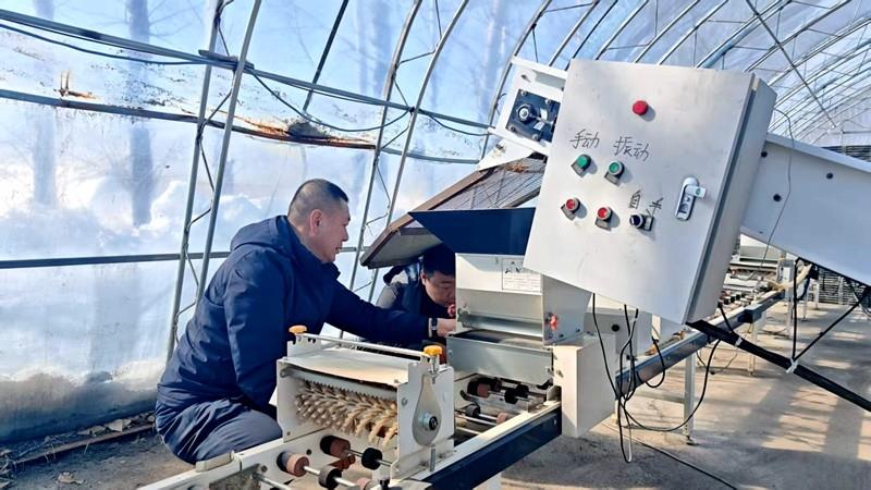 洪河农场建有8处叠盘暗室育苗基地,配备120套暗室设备,可高效集约化育秧。为确保设备稳定运行,农场电力部门对供电线路拉网排查,重点检修老化线路、更换漏电保护装置,还安装过滤净水器优化育秧用水。技术人员则对流水线传送带、温控系统等关键部件调试保养,保障设备精准运行。