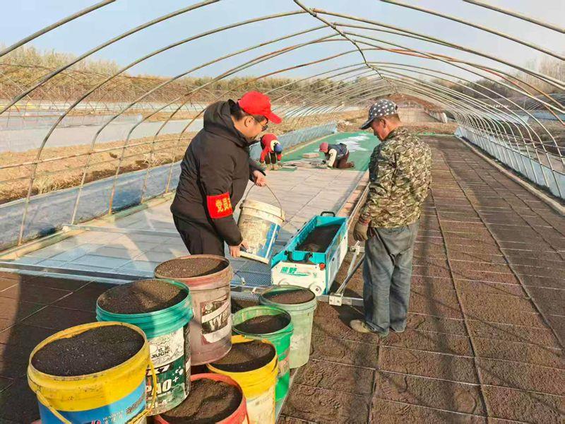 走进第八管理区三号地安玲家的的育秧大棚,金属拱架下,党员干部分工明确、协作有序。有的手持水桶细致调配育秧土壤,有的操作摆盘机精准铺土,还有的俯身检查摆盘质量,确保每一个育秧盘都符合标准。“管理区党员干部来得太及时了,有了他们的帮忙,我们的秋摆盘进度至少能提前两天,来年水稻育秧也更有保障了!”农户迟大哥一边熟练地整理育秧盘,一边笑着说道,脸上满是感激。